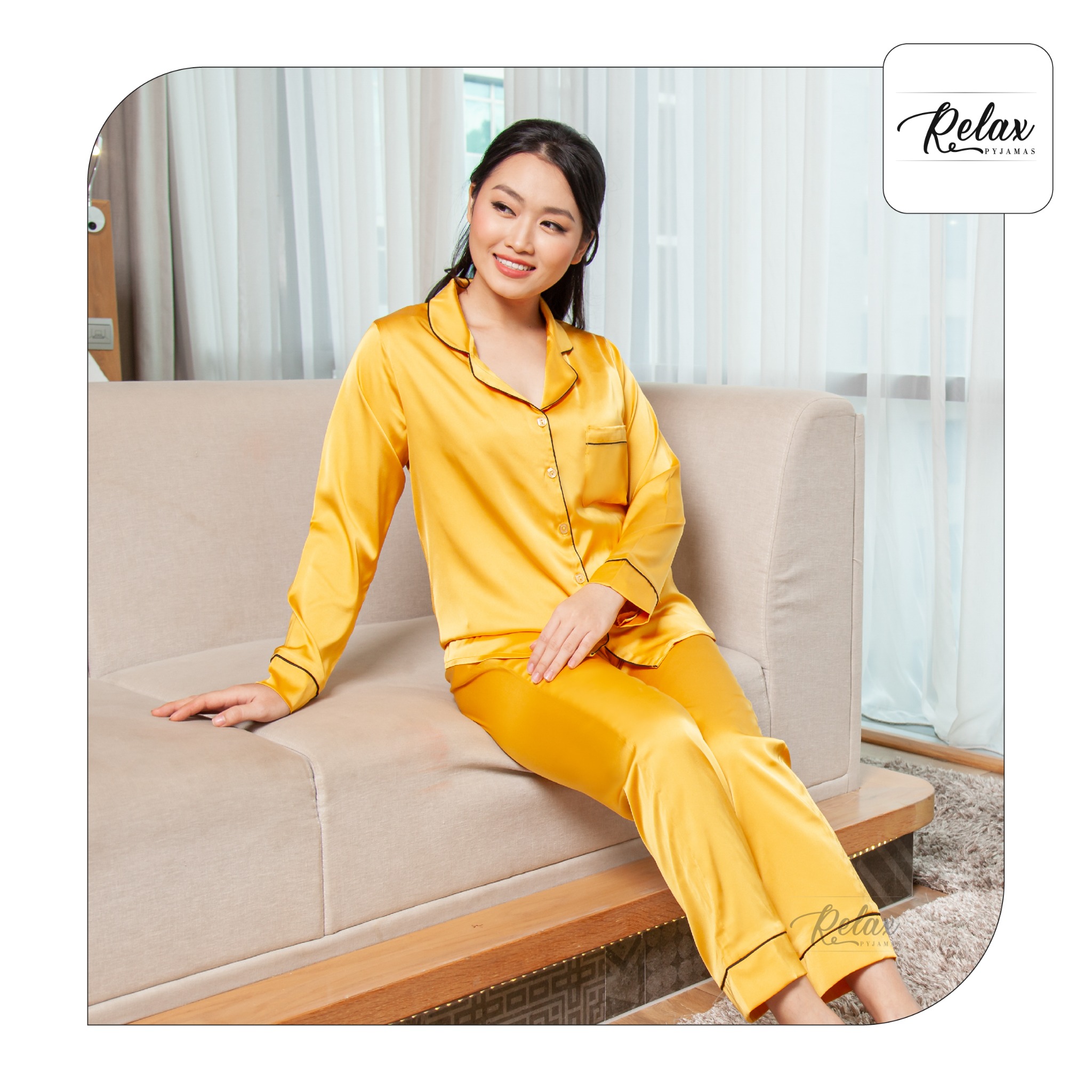 Đồ mặc nhà pyjama tay dài quần dài HW1002- Vàng đồng KHUYẾN MÃI - ƯU ĐÃI